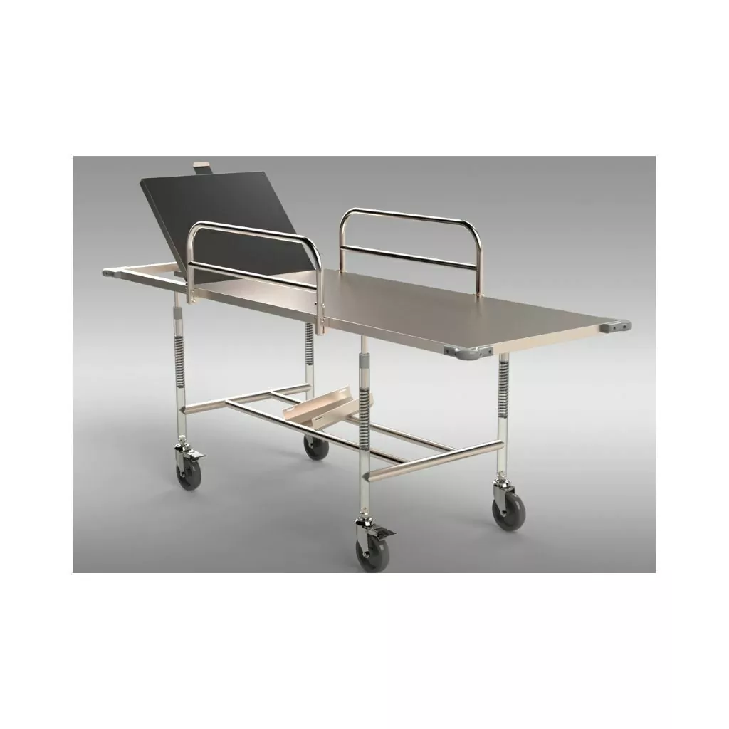 Possui estrutura em aço inox 201 e leito em chapa de aço inox 201, garantindo resistência à corrosão e facilidade de higienização. A elevação do dorso/cabeceira é realizada por cremalheira, permitindo ajustes precisos.