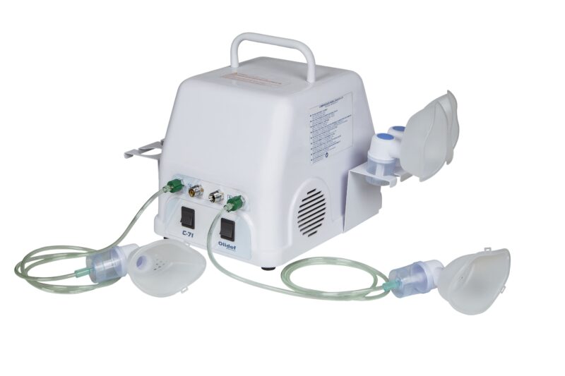 Os Compressores modelo C-71 Olidef são indicados para uso profissional nas áreas médica/laboratorial, apresentando robustez, fácil manutenção e ótima relação custo/benefício. O compressor produz ar comprimido isento de impurezas, permitindo a inalação de medicamentos, utilização de até quatro pacientes simultaneamente, além de ser indicado também para nebulização nas tendas de oxigênio e incubadoras Olidef Medical, sempre por meio dos acessórios apropriados (opcionais).