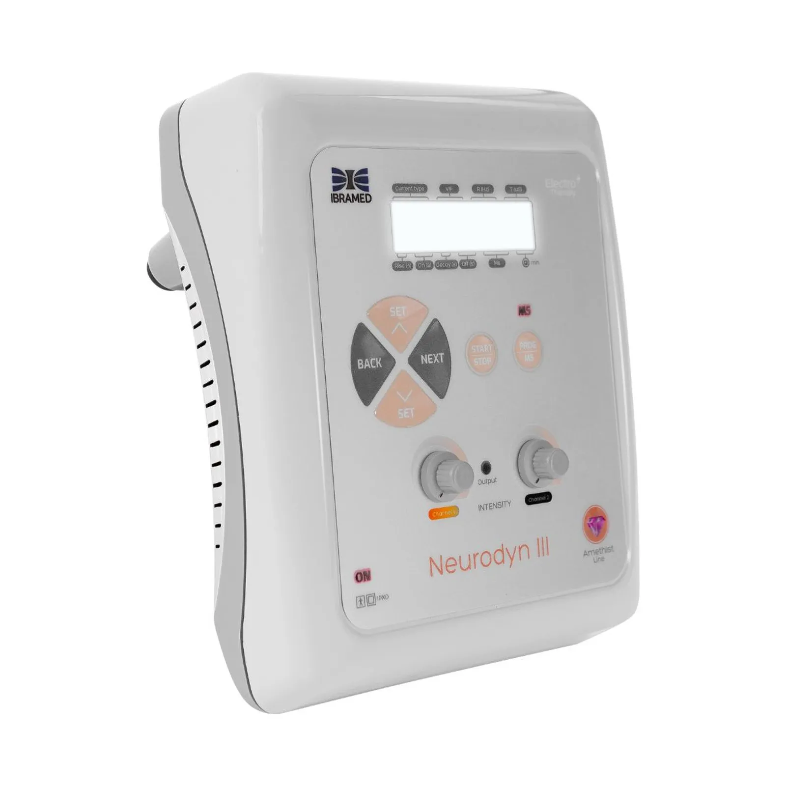 O Neurodyn III Ibramed é um equipamento portátil de eletroterapia desenvolvido para aplicação das correntes TENS e FES, amplamente utilizadas no tratamento da dor e na reabilitação neuromuscular.